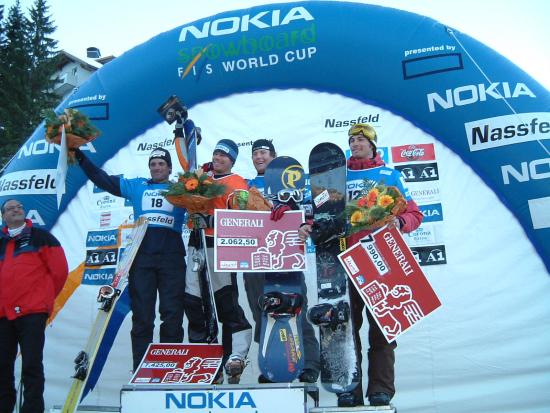 写真:男子表彰式。右から3人目がジェシーです。ヤツはアルペンレースでも勝ってるんだよね。