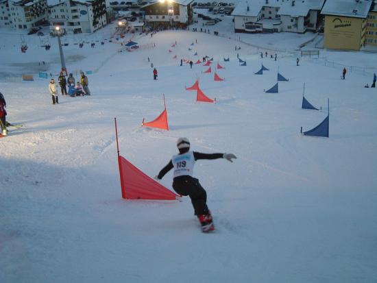 本日ワールドカップ最終日。まずは女子予選タイムレースを観戦。女子とはいえトップクラスは、男子に迫るタイムをたたき出すのであなどれない。速い選手はバンクをキレイに抜けていくね。ポジションも板も全くブレてない。勉強になるね。期待の土井&白鳥選手は、この難しいコースを果敢に攻めたものの予選通過ならず。ホントに世界は厳しい・・・。 そして決勝。その前に再度公開練習があったので、セクション毎に滑りを観察してみた。さすがに4日目ともなると選手はすっかり慣れている様で、板がガンガン当たるぐらいの接近戦で練習していた。気になったのがスタート直後の低速セクション。そこだけを何度も繰り返して練習していた。中盤のバンクセクションは狭いので、そこまでに前に出る事が重要だと云うことだな。決勝は最初に前に出た人が有利であったが、後続もがんがんプッシュしてハイスピードバンクまでもつれて転倒!なんて熱い戦いが繰り広げられた。観ている方にもそのスピード感が伝わってすごく盛り上がってた。結局男子優勝はまたもやJasay Jay ANDERSON(CAN)。2日で200万円ぐらい稼いだことになる。スゲエな。