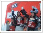 今日は足慣らしにバチェラーに行きました。BENDから除雪の行き届いた、緩やかな登り坂を車で30分程。曇天のバチェラー到着。強風&雪で超寒い!オーストリアより全然寒い!とりあえず様子みるためレストハウスにドロップ・イン。すると第一村人・・・じゃなくて桑島プロ・デモ(ギョン・ギョン)発見。彼女にはエントリーの問題で連絡取りたかったんだけど、会えて良かった。そして二人とも無事エントリー完了。ここまで来てエントリー出来なかったら泣くね。桑島さんは独りでここまで来たらしい。それはもう涙ぐましい珍道中だったらしい。ネタいっぱいだね。お疲れ様。エントリーは4日券込みで100ドル。お安い! 早速ゲレンデに出てみるが、ウェアーを透過してくるような寒さに負けてしまいそう。バチェラーを楽しむべくリフトで上がると、ゴーグルに雪付いちゃって雪面が見えん!取っても取ってもくっついちゃう。レストハウスに一時撤退しながら滑ってる感じで、待望のピークからのダウンヒルはムリ。遭難しちゃう。下のバーンでテケテケ滑ってた。パウダーは何処にも有りません!風で持って行かれちゃったのかなぁ? クロスコースはまだ造っている途中でガタガタ。でも大体のレイアウトは判った。数年前に行われた日本オープンBXをご存じかな?殆どストレートのコースにキッカーとキャニオンで構成された異次元コースを。それの進化版かな。簡単に言うと2コ1で飛んでくローラーやウェーブ、つまりキャニオンが多い。他のセクションも一杯で、ちょっと覚えきれなかった。明日からの公開練習で頑張るさぁ〜。 桑島さんは偶然にも隣の宿に泊まっていたので、大会中一緒に行動することになった。携帯も無しで上手く事が運ぶもんだ。晩飯はみんなで近くのレストランへ。大会前は肉でしょう!(お、大会後もか?)ってことでステーキやらローストターキーやらをがっついた。食べきれない程の山盛りフライドポテトにゃ笑いが止まらんかった。外人さんよぉ〜そりゃでデッカクなるわ。ハライッパイデ、オヤスミデス。 |