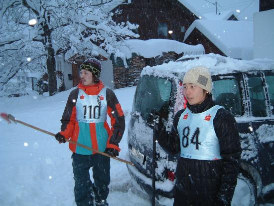 車に荷物を積み込みメルタールへ向けて出発。まずは高速に乗ってインスブルック方面へと車を走らせる。運転手は工藤さん。え〜地元の人より飛ばします。攻めてます! インスブルックからイタリア方面へ南下し、高速を降りるところでオイラが見間違えて行きすぎてしまった。だって地名がいっぱい書いてあるんだもん。瞬時に地図上で照合できなかったのさ〜。2ユーロほど余分に払って目的の出口まで戻り、気を取り直してリエンツ方面の東に向かう。そこで林に運転交代した。 下道は所々雪が積もっていて、ハンドルを持つ手に緊張が。トラックも走っているので低速でついて行くしかなかったり、頑張って抜いたりしながらSPITTALまでやってきた。「あれ?SPITTALまできたら行き過ぎてないか?」ちょっと彷徨って町行く人に道を尋ねた。もちろんドイツ語で説明されると困るので、英語が話せそうな若い女性に声をかけてみた。彼女は有難いことにオイラでも判るような英語で説明してくれて、我々が分岐を見落としていたことが判った。そういえば昨年も同じ分岐を見落としていたような記憶が・・・。それからは彼女が教えてくれたとおりの道を進んで無事メルタールに到着。迷った分を含めて5時間ぐらいの道のりだったけど、思いのほか近く感じた。 宿にチェックインした後、ゲレンデに行ってコースチェックするつもりだったが、ちょうど戻ってきた選手に聞いたところによると、「コースはまだ造成中で、入ることもできない。」らしいので行くのは止した。ワックスなどしてからTCミーティングへ行った。すでに日本人選手も多く集まっていた。今回参加する日本人は、女子は三宅、土井、植松、三井、吉田、藤原。男子は千村、飯嶋、五十嵐、長嶋、高橋、それから我々4人と二星コーチの総勢16名。全体では女子70名、男子150名と結構多い。みんな世界目指して頑張ってるんです。 ミーティングの内容だと、明日午後から公開練習で、午前中にコース手直しする予定だとか。『コース作りが遅ていて1戦しか開催されないかも?』なんて噂もあったが、なんとか2戦できそうかな。ミーティングではウェルカムドリンクでビールを頂いた。土曜にはパーティーもあって、その時にも1ドリンクついてくるようだ。2戦分の参加費は僅か30ユーロ(4,200円)で、これだけの待遇は素晴らしいね。単純にお金の問題だとは思うんだけど、日本と何が違うんだろうか?不思議だ。 写真:キリムラクン、アタマナガイデェ〜ス。 |