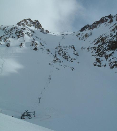 しょうがないのでペアリフトに移動したらペアリフト開いてないし! 仕方なくTバー乗って練習再開しようと思ったが、人も多いし練習にならない。よってトレーニングは終了。シャキッと滑り込めてないなぁ〜最近。雪は良いのでパウダー求めて先日行ったリフト線下に行こうとしたが、リフトが動いていなかった。どうやら雪が積もりすぎてリフトが雪面に接地しているらしい。もう一つの未だ動いているのを見た事がないペアリフトは、雪崩で支柱が曲がってしまって動かせないらしい。恐るべしアンデス山脈。