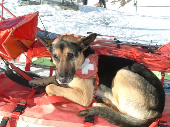 写真:ゲレンデにて待機中の救助犬。