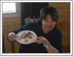 念のためテーピング巻いて滑りに出発。雪はキッチリ冷え固まっている。ピステは粗めのガタガタ。1ヶ月ぶりに滑るオイラにゃ手強い。すっかり体が動かなくなっていて落とされまくり。雪が緩んできた頃やっと動きを思い出してきたが、本日はこれにて終了。標高も3000m越えてるし時差ボケも残っているからムリはしない。ゲレンデにあるレストハウスで昼食。「クラッシュ」というランチプレートを注文。「肉とライスにソースがかかったジャーマンフード」って聞いたんだけど、水団みたいなパスタに肉の入ったソースがかかっている見栄えの悪い不味そうなモノだった。「失敗した!」って思ったけど、食べてみると以外に美味しくて腹一杯になった。ドリンク込みで19ペソ。(1ペソは38円ぐらい)