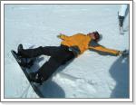 雪は昨日から降り続いている。ゲレンデ周辺の地面が見えていたところは全て雪でパックされ完全な冬景色。綺麗〜。多少吹雪いてはいるが昨日よりはコンディションが良さそうなので、ゲレンデに行ってみたらTバーしか動いていない。しかも一番下の短いヤツが2本だけ。ロングターン4回転ぐらいだな。雪は柔らかいパウダーで最高なんだけど、こんな短い緩斜面じゃしょうがない。上にあがるリフトもその他のコースもクローズだからオフピステに行く方法が無い。嗚呼無念。仕方がないので緩斜面で基本の復習をする。次第にTバーが混んできた。今日は日曜だからTバー2本じゃ輸送能力不足。待つのもウザいからハイクアップ。5本程滑ってもう飽きた。よって終了。スッキリしねぇ〜。