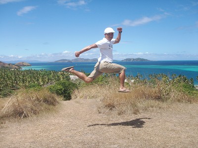 鈴鹿から早1ヶ月。 結果がかなり悔しかったので毎週1回は30kmほど自転車こいでます。 徐々に距離を伸ばして来年まで続けれればリベンジできるはず。 結構気長だったりして・・・ さて慌しい夏も過ぎようとしていますが、 私は珍しく南の島にバカンスへ行ってきたのです! それもフィジーのマナ島へ。 今回は重いボードケースなんかは無し! 余裕のスーツケースだけで飛行機に乗ったのだ。 かさばるウェアーなんて無いもんね。 Tシャツとショートパンツだけ。 なんて気楽な海外旅行だ。 液体物の機内持込だけ要注意でしたが・・・ 中部国際空港から韓国経由でフィジー本島のビチレブ島に入国し、 そこから8人乗りのセスナ(マジ小さいの!タクシー感覚じゃん!)で エキサイティングなフライトを楽しんで目的地に到着。 そして訪れたマナ島はガイドブックそのままの青い海に浮かぶ白い砂浜の小さなリゾートでした。 マナ島には一つのリゾートしかないのでお金もカードも持ち歩かなくて良いのね。 ルームナンバーとサインでチェックOK。 そこで初体験のスキューバ、カヤック、まったく出来ないテニス、これまたへたくそな卓球(これが一番燃えた!)、ビーチサイドでのマッサージ(超極楽!)、まったりプール、プールサイドでビール飲みながらのビンゴ(飲み代分勝ったぜ!)、夕日を眺めながらのディナー(なんてリッチなんだぁぁぁ)などなど、南の島を満喫したのです。 スキューバでは砂の中に隠れているエイがみられたり、ホントに青く透明な海でお魚いっぱいに大興奮。 あっという間に酸素がなくなりました。 でも後日シュノーケリング(無料)したら十分すぎるぐらいお魚と戯れることが出来て『スキューバのお金勿体なかったかも?』なんて思えるほど海を満喫できるんです。 部屋はオーシャンビューじゃない『ブレ』と呼ばれるコテージで、一番安い部屋だけにエアコンもバスタブも無かったけどまったく問題なし。 ちょうど乾季で夜は結構心地よい気温だったし、歩いて1分も経たないで海に出られるしね。 やっぱり新婚さんとかはオーシャンビュースイートブレに泊まってました。 もちろんそれはお高い部屋です。 フィジーに行くなら絶対離島にご宿泊した方が良いですよぉ〜。 写真 どうも最近このスタイルを定着させようとする思惑が・・・ |