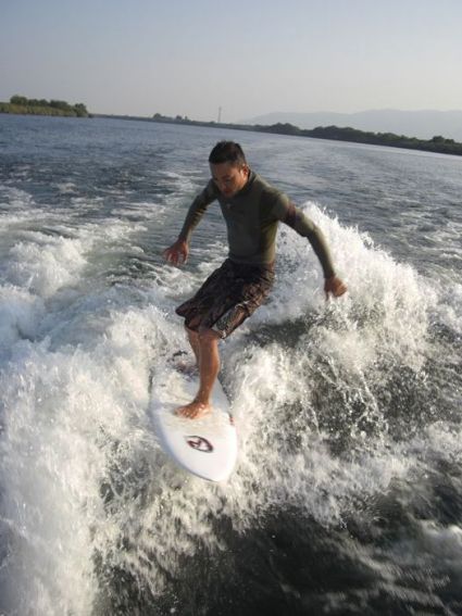 しかし、このいい波を作るのにはボートのウェイトバランスと乗員の愛があってこそ・・・大変なんです